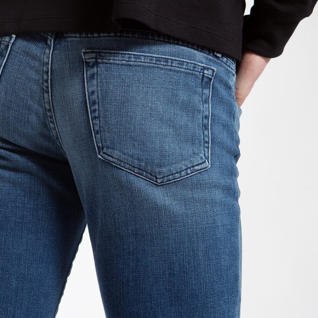 The Signature Straight Leg Cut From Premium Denim In A Soft Blue Wash With Subtle Whiskering. Classic 5-Pocket Construction, Standard Mid Rise Waist And Slight Tapering At The Hem