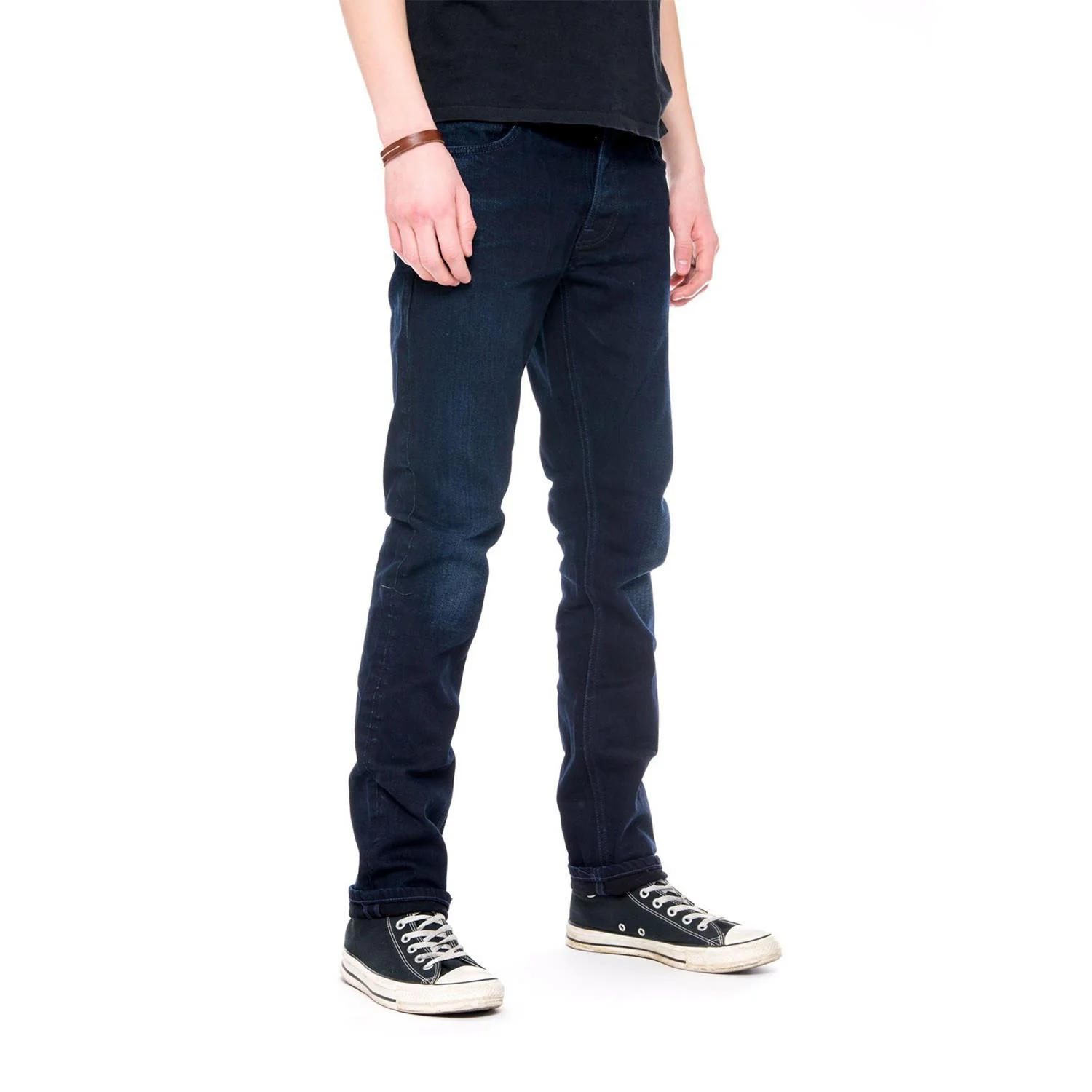 First step worn in black. Indigo warp and black weft give a deep shade.