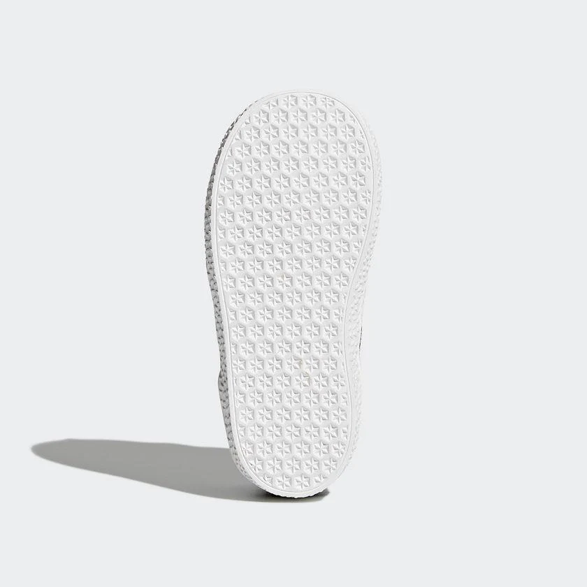 The original Gazelle made in the '60s for football's quick stop-and-start moves became a wildly popular streetwear style icon. These infants' shoes are designed for speedy transitions with straps for fuss-free on and off. Made from suede and adorned with a metallic gold Gazelle atop the 3-Stripes.