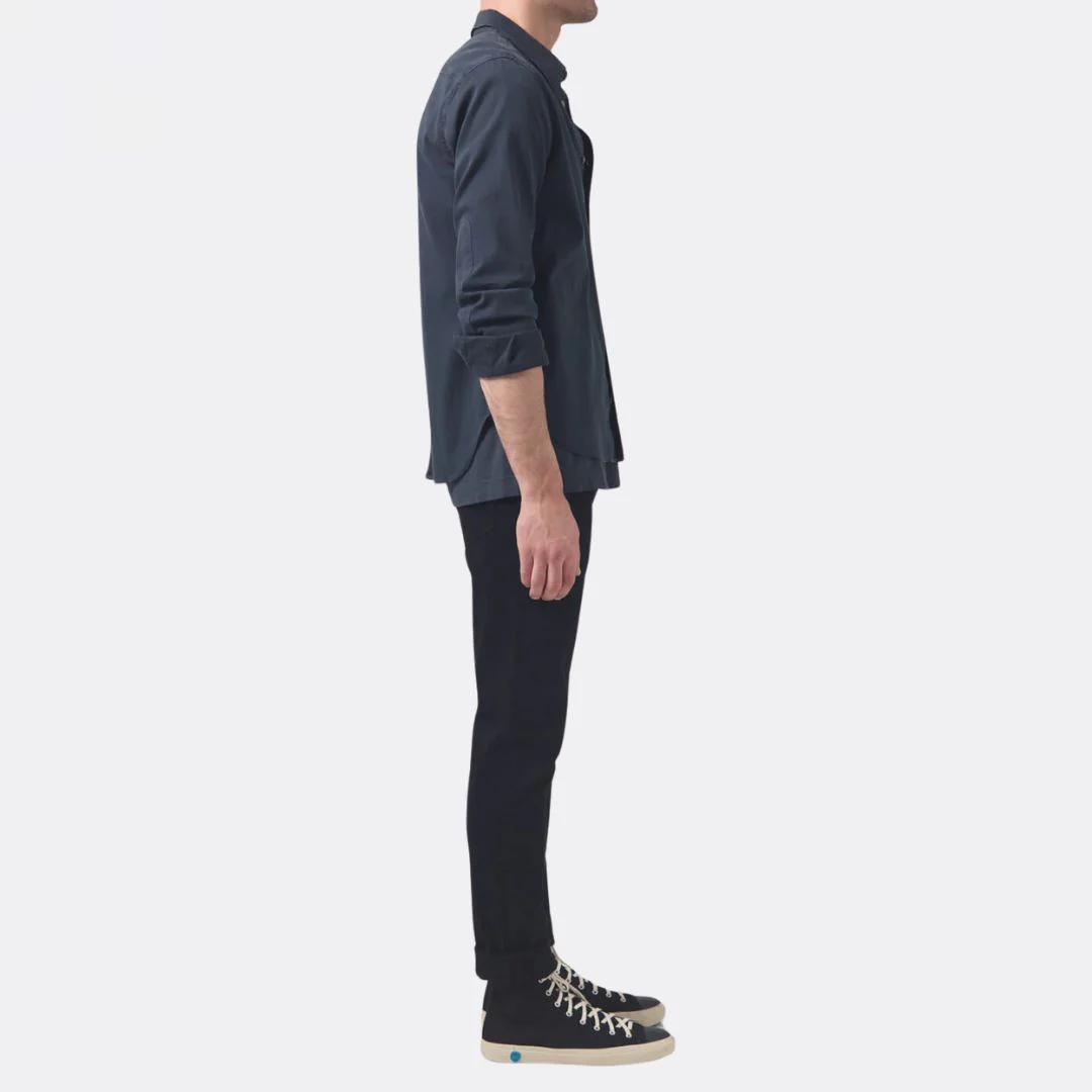 The tapered slim. The London fits fuller in the thighs and tapers to the ankle. In high stretch perform denim.