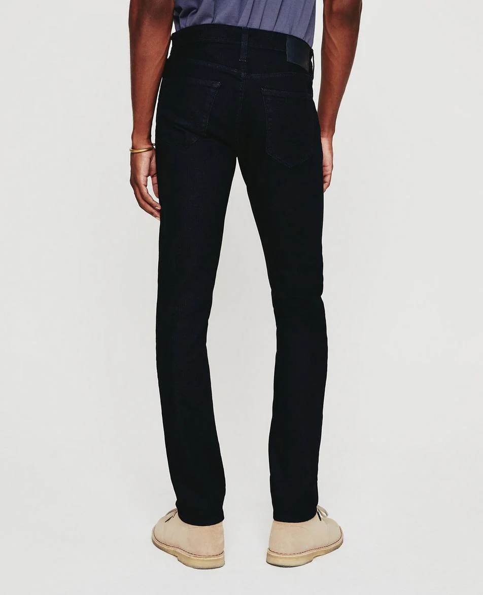 The Tellis modern slim jean for men features a fitted upper block and tapered leg opening—complete with a dark wash. This men’s pant is designed in 11 oz.