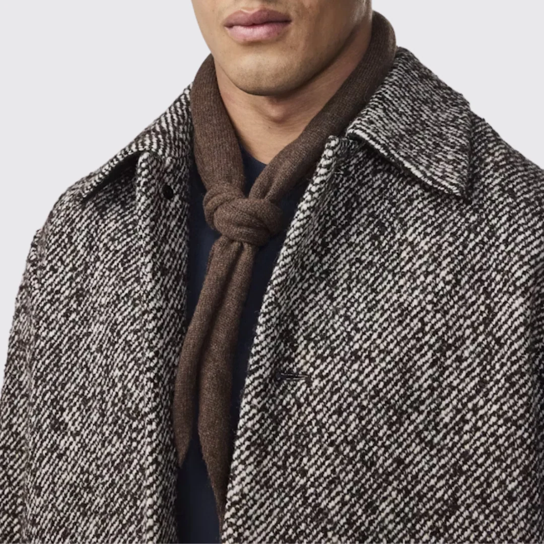 A triangle-shaped scarf crafted in smooth, warm wool.